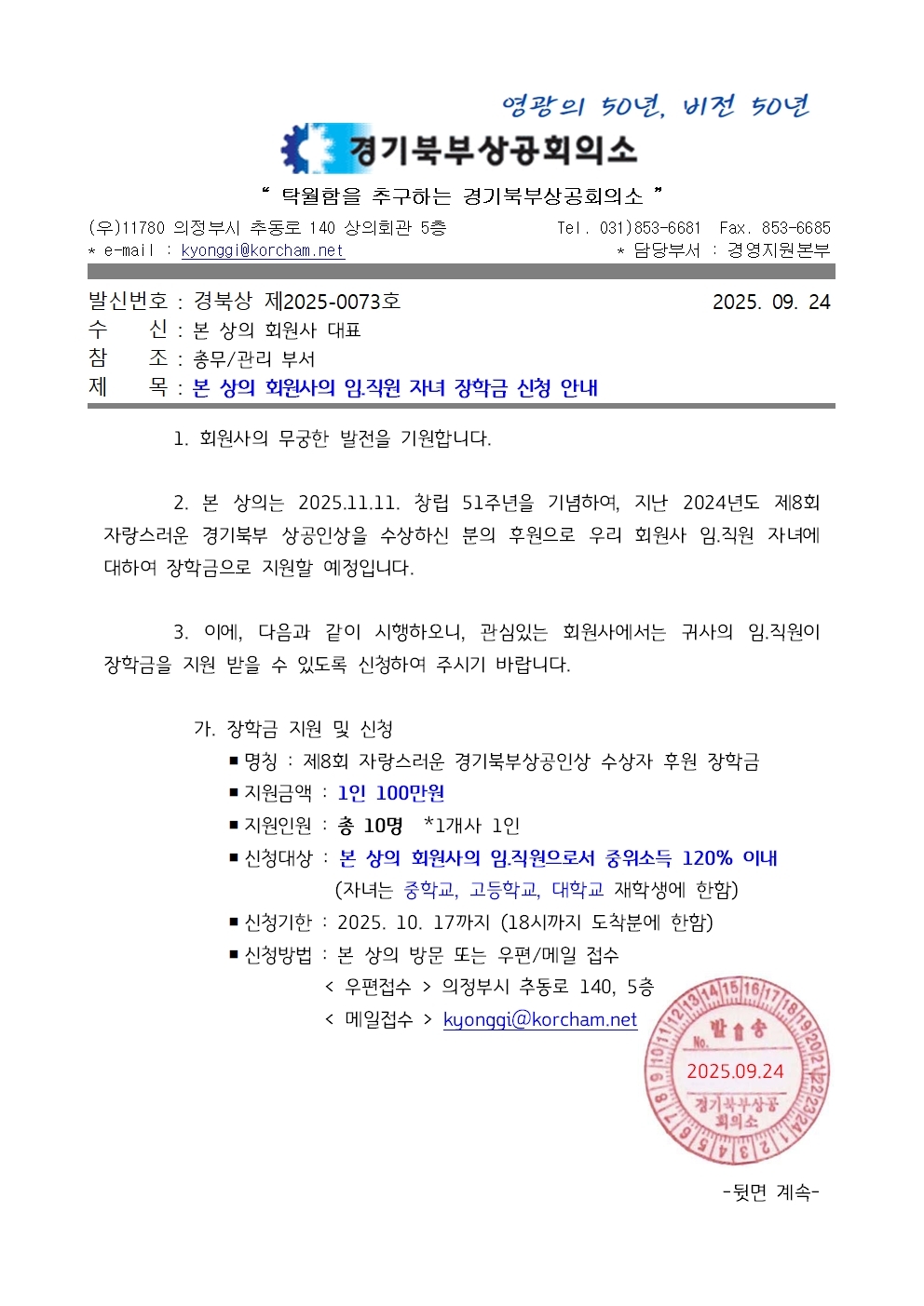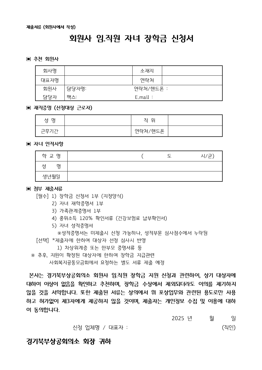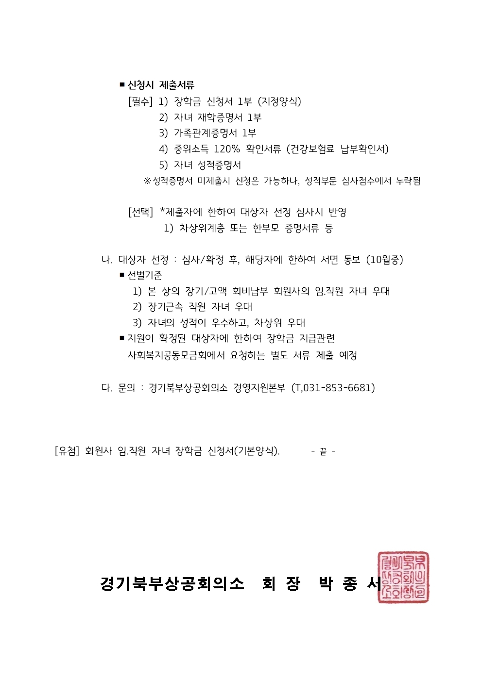 | ‒ | 본 상의 회원사의 임.직원 자녀 장학금 신청 안내 |